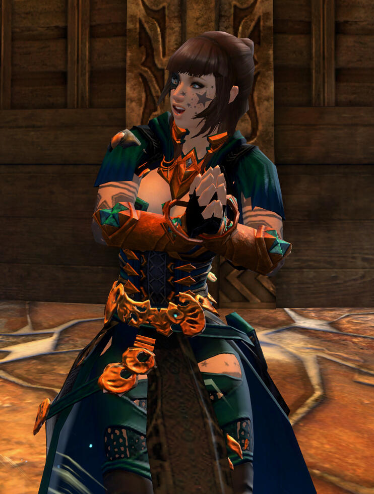 Most of the Guardholme have been away for weeks since their calling to Cantha to face off against this threat. Now days after their return, they rest and heal their wounds and continue on with their lives, some finding solace and others still haunted by what they saw. It will be a long road ahead, some needing to find their way back both in body and in mind.Yet an unlikely visitor came by one day, a familiar face wearing simple leathers and furs carrying a pack made for a long trek. Melandra has found her way to the Guardholme, no longer adorning the false shaman clothing or the wicked jade armor from their last fight. She was freed of the demon’s influence, having survived and found a way to our heroes.With an apology and a token of a wood carving of Fox to adorn the Guardholme itself, she set out on a journey to find herself once more. Our heroes may never see her again, but no words needed to be said for all they knew it was but another one of their kin they had managed to help.