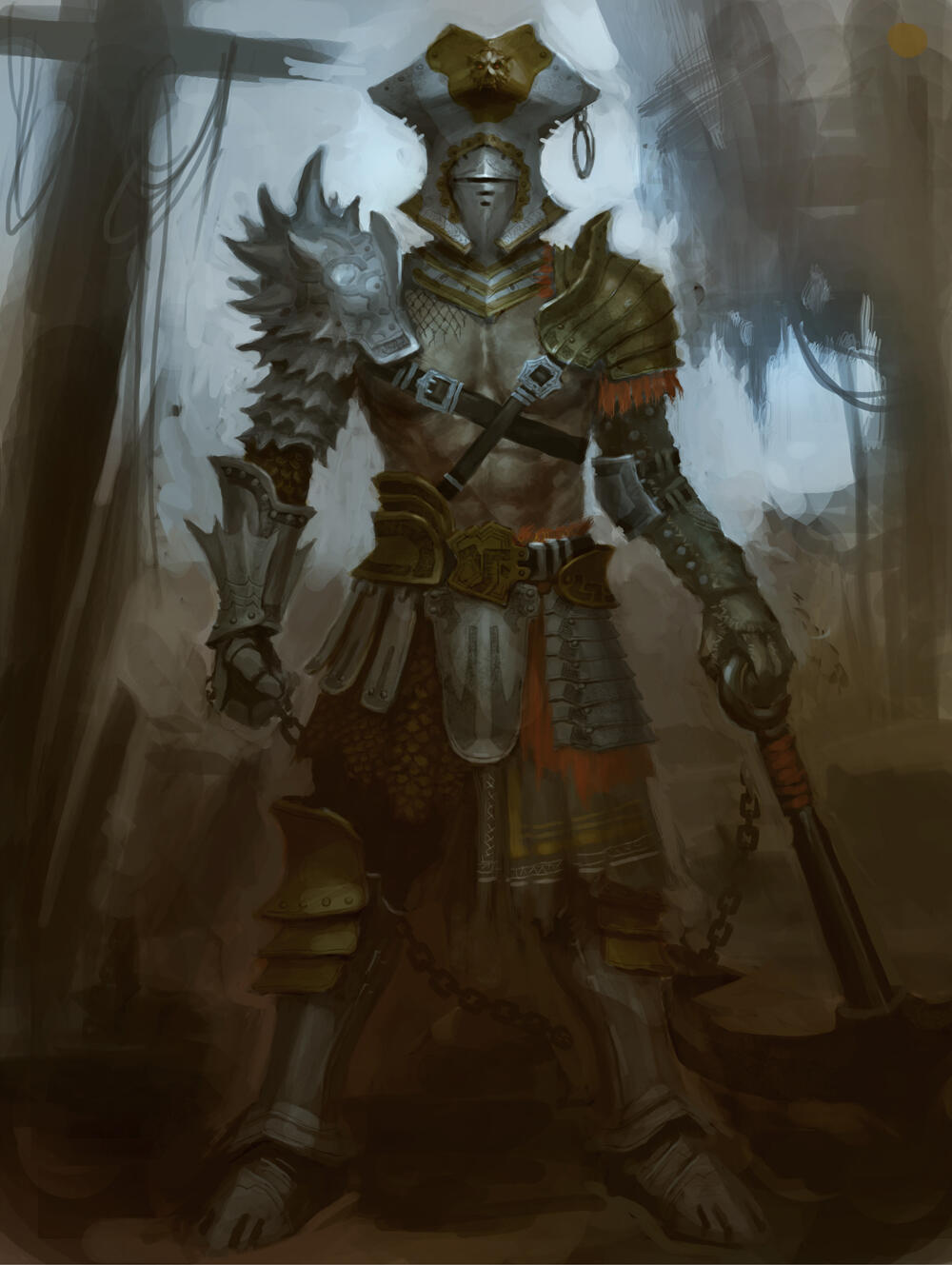 Snowden Drifts was the best lead our heroes had to find their kin. After finding the village of Mennerheim having suffered a similar attack, the group decided to venture into Molengrad, a Dredge mine rumored to be keeping the prisoners.They didn't make it far as they were ambushed from all directions. The battle was hard fought as these Dredge wielded familiar weapons from before showing that our heroes were on the right track. Through bloodshed and sheer will they found the prisoners, among them was Dagny and Magna.During their escape back to Mennerheim they were blocked off by a titanic Dredge drilling suit manned by a Lieutenant Molev. With mounted cannons and a weaponized ley-imbued weight it proved a difficult fight that our heroes survived.Back at the Guardholme they tended to their wounds and scavenged the strange weight that had broken off the suit to learn of its properties with the other Dredge weapons. They may have saved their kin but they still had to put a stop to the Dredge threat.