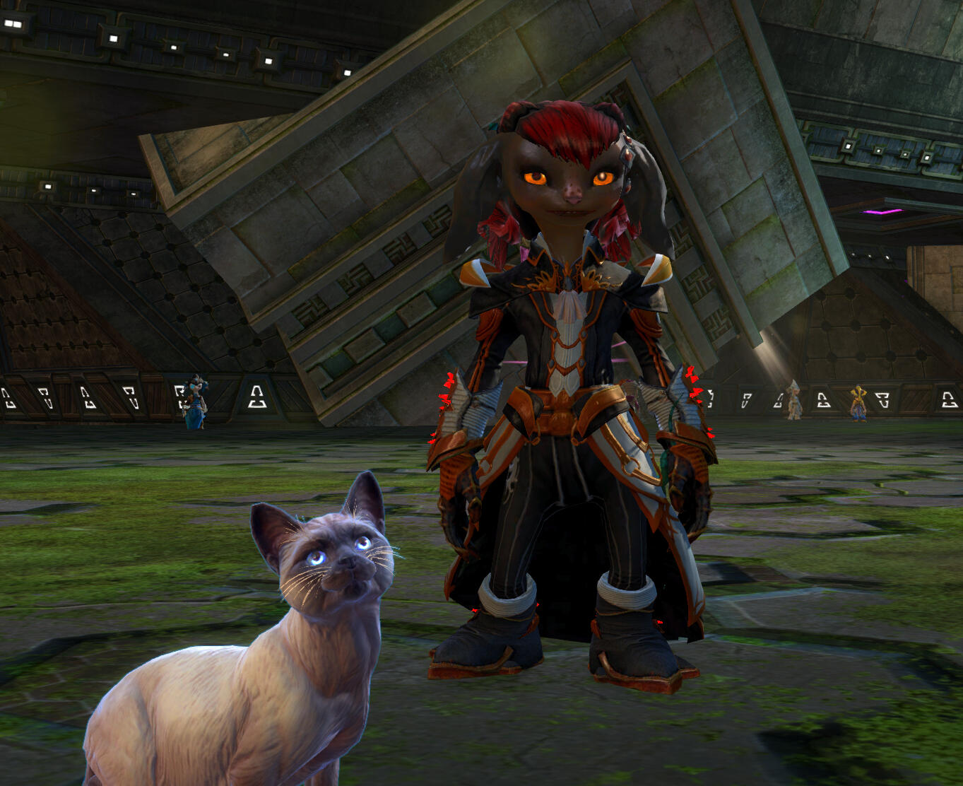 It began when our heroes received visions through dreams and nightmares, someone or something calling out to their aid far south in the lands of Cantha. They decided to journey there by airship and set sail from Seitung Province to the nearby isles they saw in these visions. They found that it has become a place for trade and within the marketplace, they spotted the Spirit of Fox.Our curious heroes followed the Spirit which led them to an old shrine. After many attempts to communicate with the silent Spirit, it fled following the arrival of a new face. A Shaman of Fox known as Melandra who is said to have been chasing the Spirit in hopes to help protect it from an evil she called 'The Hunger'. Upon hearing this, a darkness overtook all of their minds causing them to suddenly fall unconscious.Later they awoke, aided by Melandra who has informed them they have been marked by this Demon, unsure as to how or why. But right now they had to help Fox by repairing their shrine, a piece being a jade tablet that was shattered in two. The Guardholme thought these were what the visions warned them of and decided to aid this Shaman and Fox.