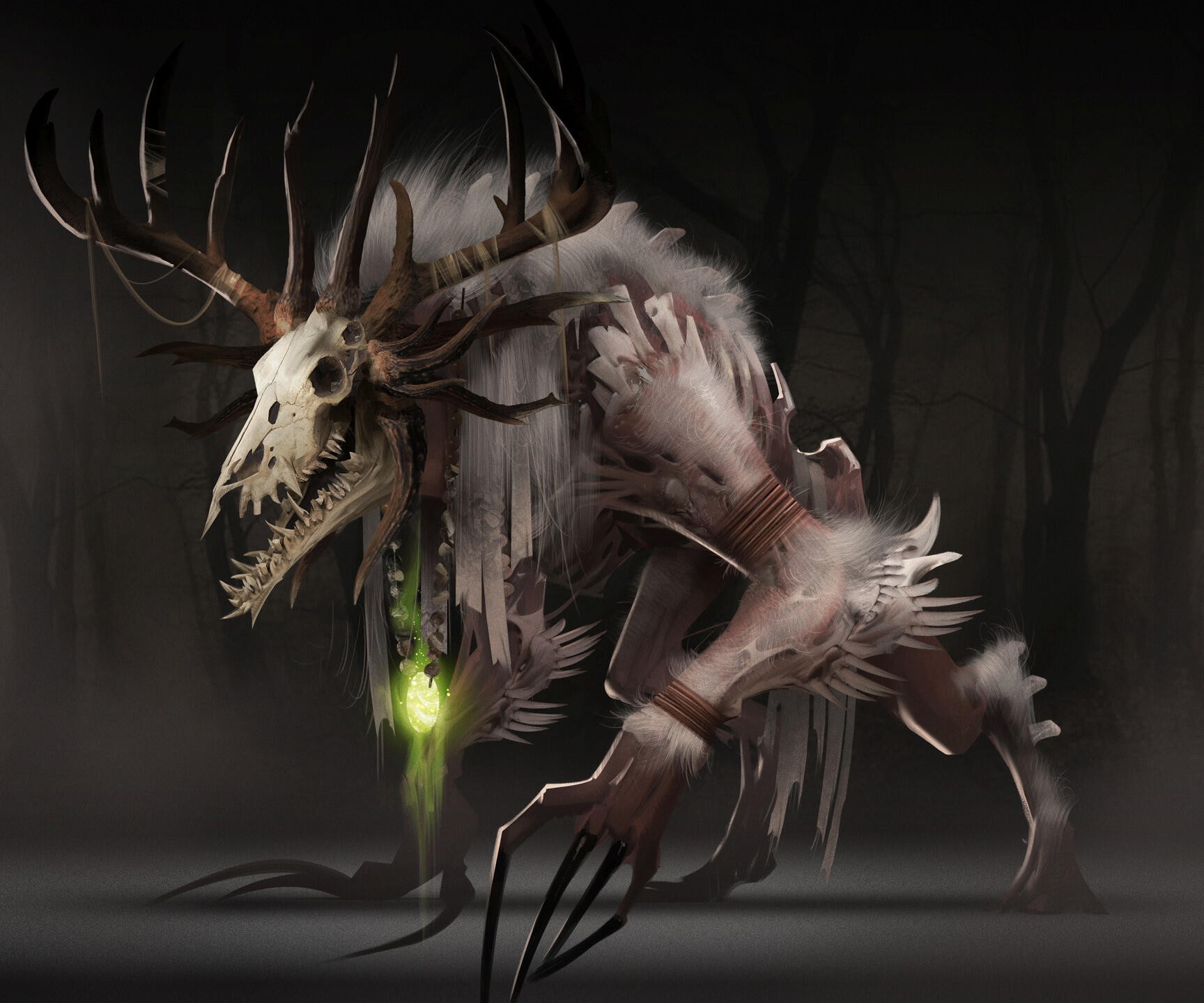 A relic from an ancient era of the world known only through Norn legend. Lured by the magical echo of the Red Storm, the beast came to the southern lands to prey upon the people and our heroes.With the aid of the Spirits of the Wild to banish the cursed entity, the lands would be safe once again. Unbeknownst to the saviors that a sliver of its curse lingers and corrupts one of the heroes, Hroth, where in time a shadow of the beast will rise again...